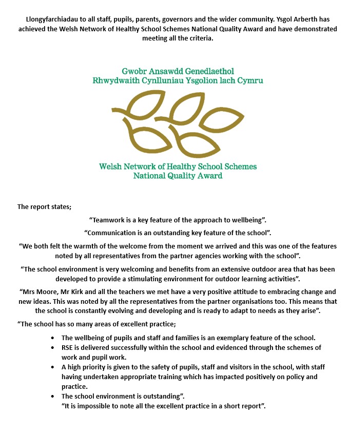 Healthy Schools is an initiative which allows our children to become healthy, capable and ethical citizens. The award is split into seven areas: Food and Fitness; Safety; Hygiene; Mental and Emotional Health and Well-Being; Substance use and Misuse and Relationships and Personal Developments. Each of these areas are incorporated and encapsulated by all the daily habits, routines and of course, the curriculum that is delivered. Here at Narberth, we love to trial new initiatives which give our children the best opportunity to experience these seven areas thus allowing our children to be healthy individuals. :